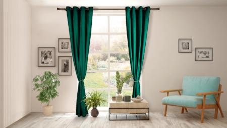Set de 2 draperii din catifea Verde inchis . Setul contine 2 draperii, fiecare cu dimensiunea 140x270 cm. Sistem de prindere cu inele metalice. Material : 100 Poliester, densitate 205 GSM . Include si 2 cordoane tip sfoara