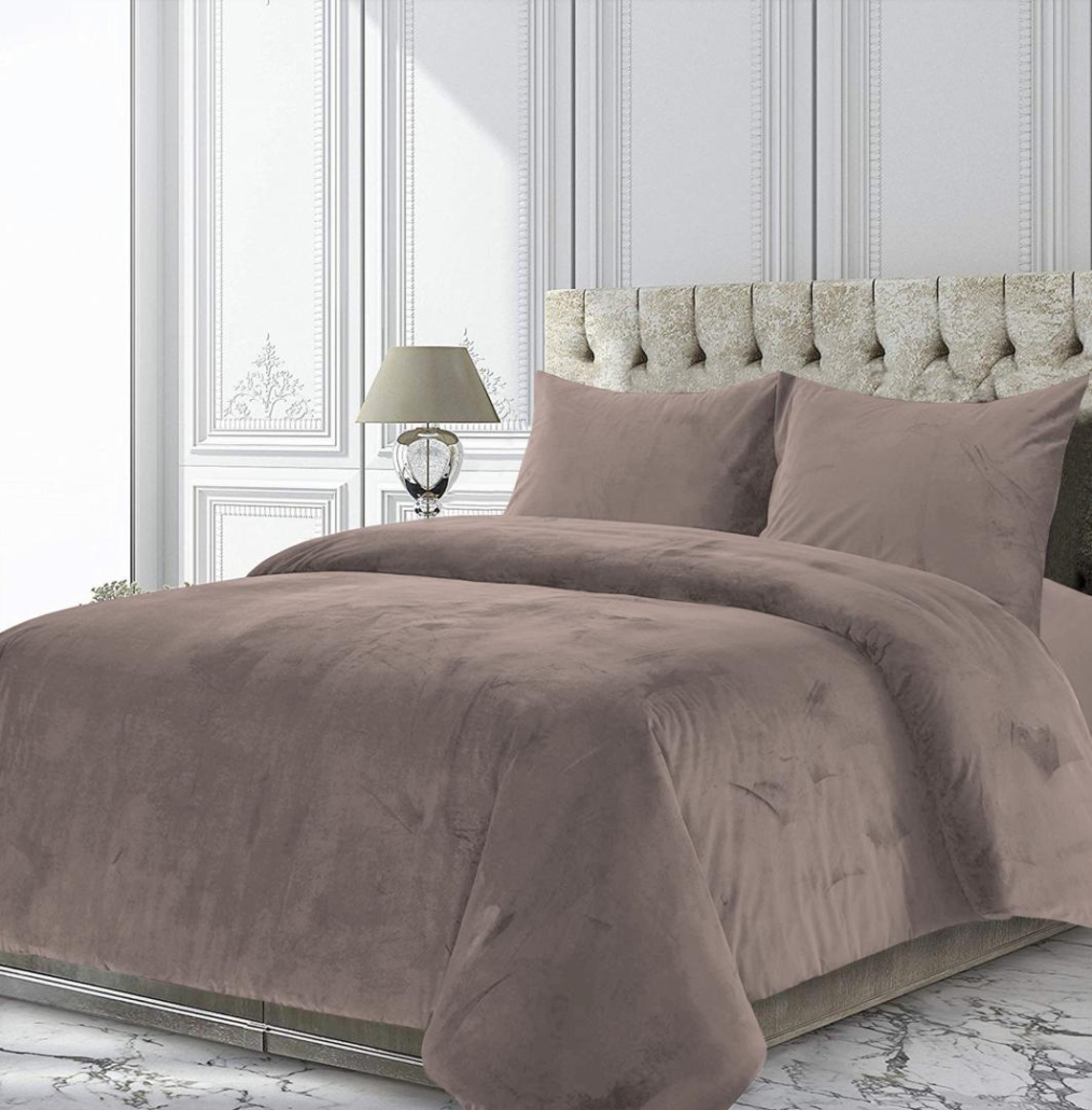 Material : Fata din catifea de inalta calitate 200gsm + spate din microfibra 90gsm. Setul contine o husa de pilota 200x220 cm si 2 fete de perna 50x70 cm cu sistem de inchidere tip plic.