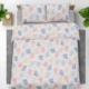 Dimensiuni produs: 2 fete de perna 50x70 cm, cearceaf pilota 200x230 cm, cearceaf pat cu elastic 180x200+28 cm.