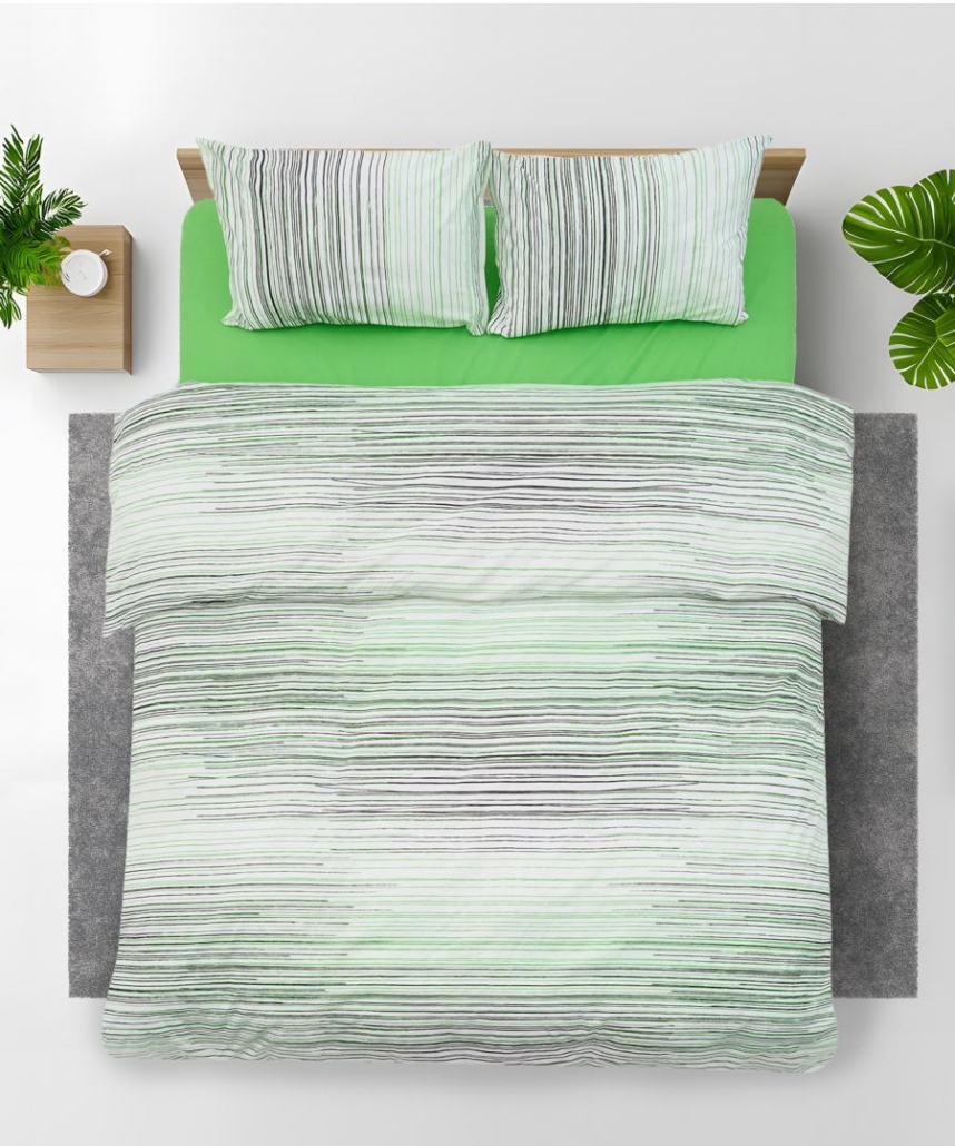 Dimensiuni produs: 2 fete de perna 50x70 cm, cearceaf pilota 200x230 cm, cearceaf pat cu elastic 180x200+28 cm.