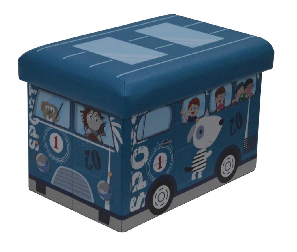 Taburet pliabil pentru copii cu spatiu depozitare-Albastru. Material exterior : PVC printat+baza din MDF.Grosime sezut 20mm. Greutate maxima suportata 100 kg . Dimensiune produs: 38x25x24.5CM