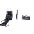 Surubelnita cu acumulator, voltaj 3.6V Ni-Cd 1300mAh, turatie in gol 210rpm, trepte de torsiune: 15+1, torsiune maxima 4.5N.m, timp de incarcare 3ore, maner pliabil de la 180° la 90°, accesorii: incarcator, 6 biti 25mm, suport biti